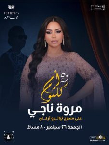 ومن المقرر أن تأخذ مروة ناجي جمهورها في رحلة فنية استثنائية مع أجمل وأشهر روائع أم كلثوم، في أمسية طربية خاصة تفيض بالشجن والعذوبة وتعيد للأذهان زمن الفن الجميل والتي سيكون من بينها سيرة الحب وانت عمري ولسه فاكر وغيرها الكثير في ليلة خاصة ستمتد علي مدار ساعتين ستنطلق في تمام الساعة الثامنة مساءا.