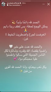 جوري بكر تكشف عن تعرضها لإصابة واحتياجها لـ4 غرز: “الحمد لله عدت على خير”