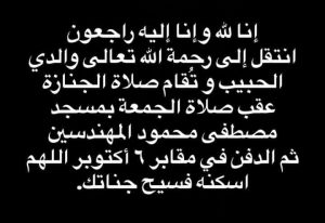 أعلن الفنان محمد رمضان عبر صفحته الرسمية على موقع “إنستجرام” وفاة والده، حيث نشر قائلاً: “إنا لله وإنا إليه راجعون، انتقل إلى رحمة الله تعالى والدي الحبيب، وتقام صلاة الجنازة عقب صلاة الجمعة بمسجد مصطفى محمود في المهندسين، ثم الدفن في مقابر 6 أكتوبر. اللهم اسكنه فسيح جناته.”